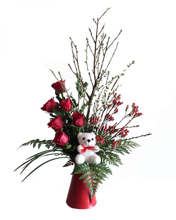 Arreglo de rosas con peluche